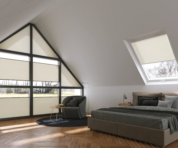 Auch Fenster, die nicht rechteckig sind, lassen sich stilvoll verschatten. Unsere Plissees passen sich an: Dreiecke, Trapeze, Rundbögen oder Dachfenster – wir fertigen millimetergenau nach Maß. So bleibt kein Fenster ungenutzt – und jeder Raum gewinnt an Komfort und Charakter.