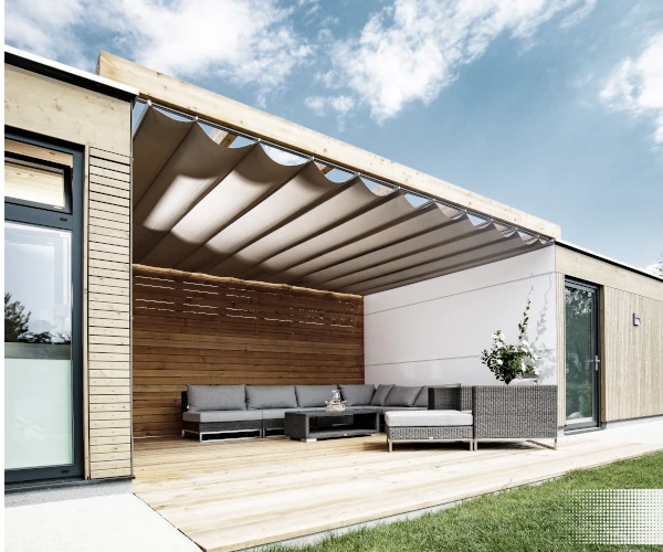 Raff- oder Faltsegel schaffen ein einzigartiges Ambiente: Sie laufen auf Seil- oder Schienensystemen und lassen sich wie ein Akkordeon zusammenschieben. Besonders beliebt über Lounge- oder Essbereichen – für variablen Schatten mit Stil.