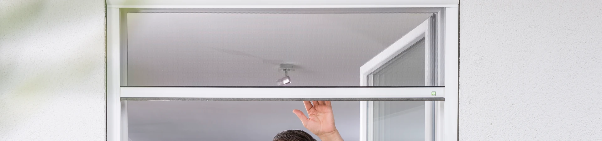 Ob Drehrahmen, Spannrahmen oder komfortables Rollo: Für nahezu jede Fensterart bieten wir eine passende Lösung. Die Bedienung ist einfach, die Passgenauigkeit überzeugend – und mit dem innovativen Transpatec-Gewebe fast unsichtbar.